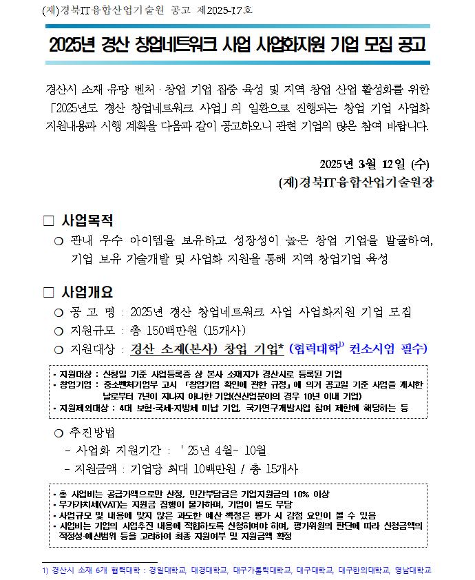 경산시, (재)경북IT융합산업기술원, 대구한의대학교 외 5개 대학이 '2025년 경산 창업네트워크 사업'의 일환으로