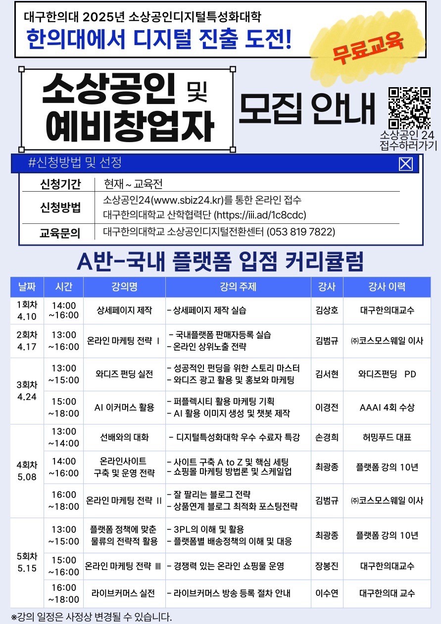 ※ [2025년 디지털전환지원센터(DT)센터] 1:1 현장방문교육 모집 세부내용은첨부파일 반드시 확인하여주시기 바랍니다.