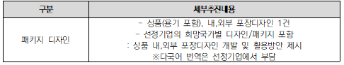 ❍ 지원범위: 수출 중, 수출예정인 제품을 패키지 디자인 수출대상국가에 맞게 제품 디자인 리뉴얼 제작함