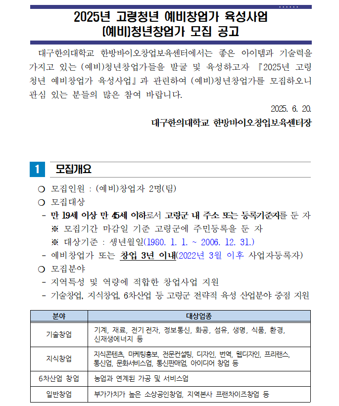 붙임1_2025년 고령청년 예비창업가 육성사업 모집(공고문)_2025.06.20.hwp