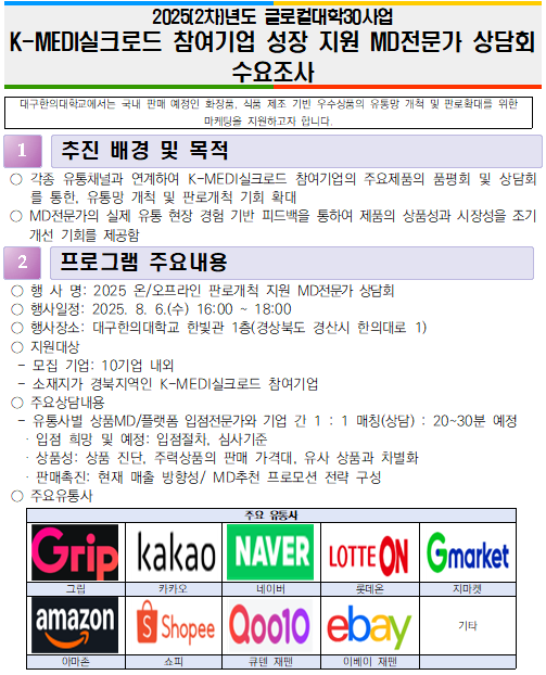 K-MEDI실크로드 참여기업 성장 지원 MD전문가 상담회 참여기업 수요조사