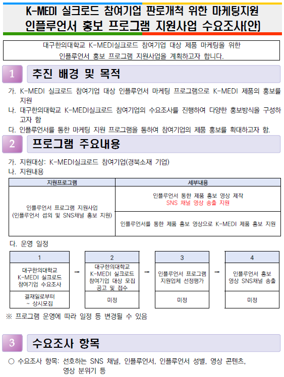 인플루언서 홍보 지원사업 수요조사
