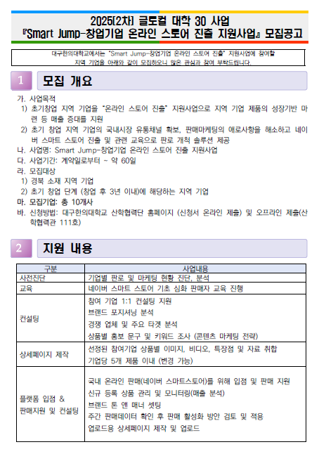 Smart Jump-창업기업 온라인 스토어 진출 지원사업
