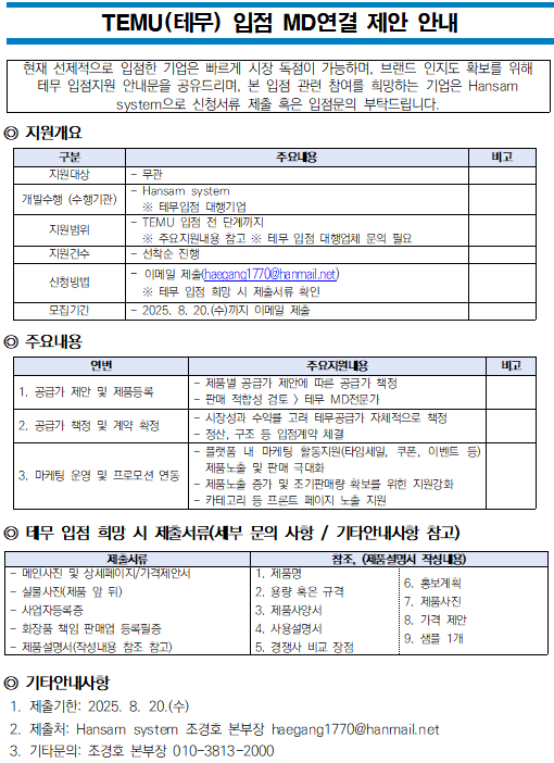 TEMU(테무) 입점 MD연결 제안 안내