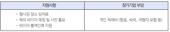 - 전시박람회 참가비용(임차, 장치) 전액 지원