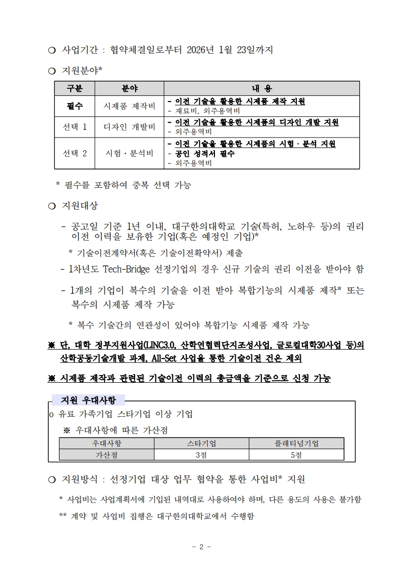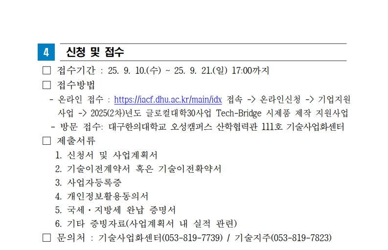 대구한의대학교 글로컬대학30 「2025(2차)년도 Tech-Bridge 기업지원사업」 추가모집 공고문_250908.hwp