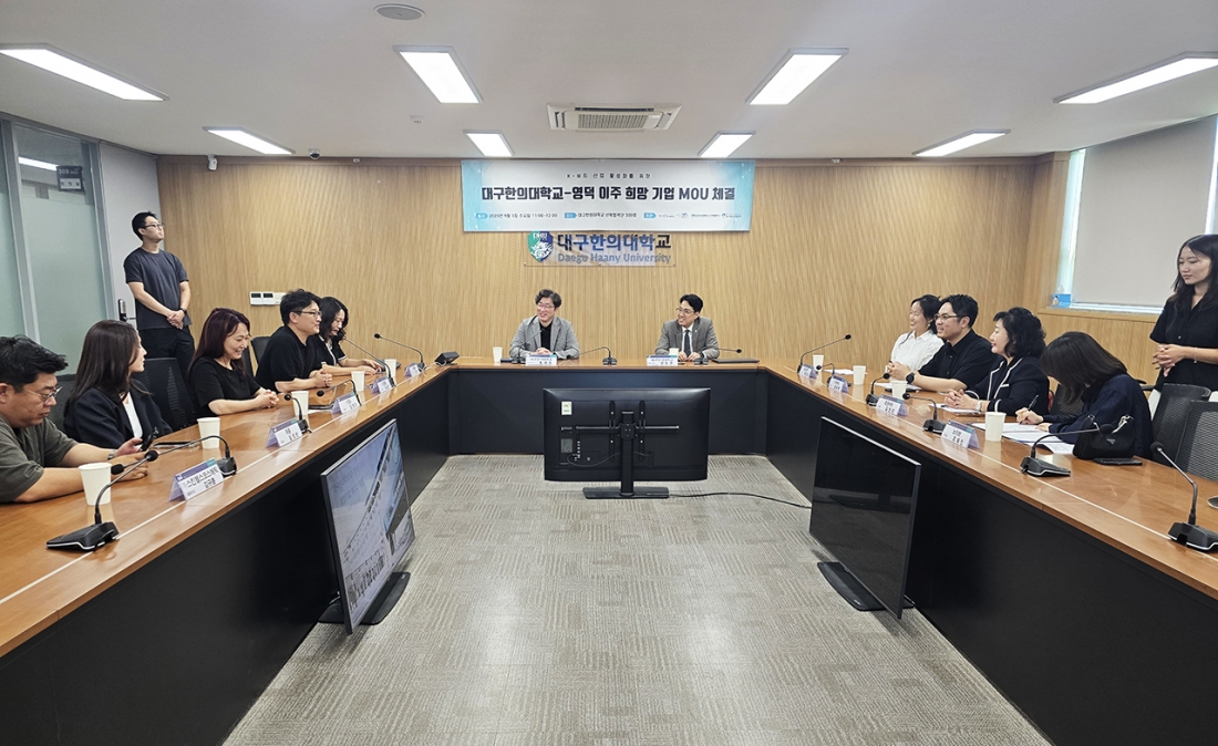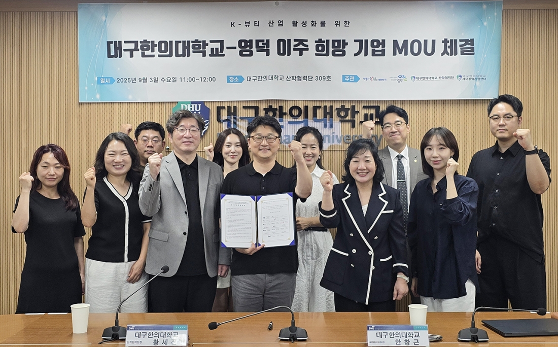 대구한의대학교(총장 변창훈) 산학협력단은 최근 글로컬대학30 사업과 연계된 K-MEDI 실크로드 프로젝트 일환으로, K-뷰티 산업의 글로벌 경쟁력 강화를 본격 추진하고자, 영덕 이주를 희망하는 10개 기업과 업무협약(MOU)를 체결했다.