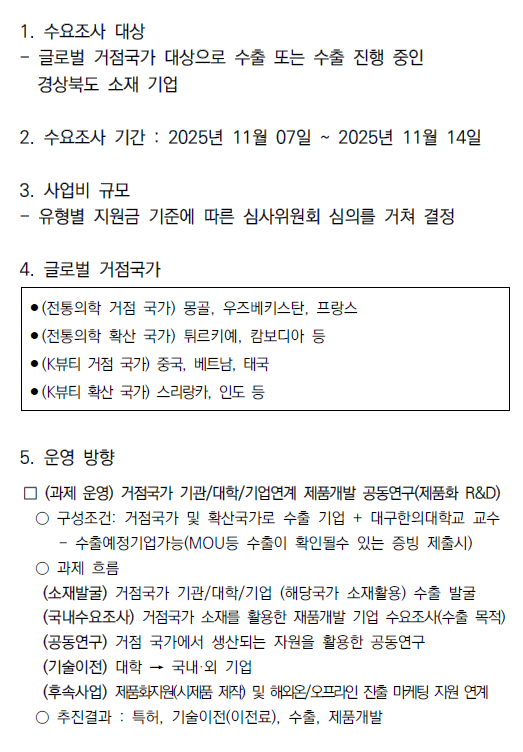 (2025글로컬) K-MEDI 실크로드 글로벌 시장 진출을 위한 수출제품개발 공동연구 사업 수요조사