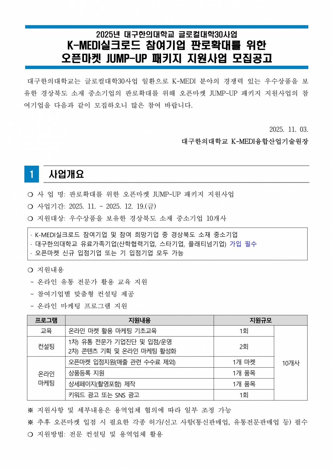 [글로컬대학30사업] 판로확대를 위한 오픈마켓 JUMP-UP 패키지 지원사업