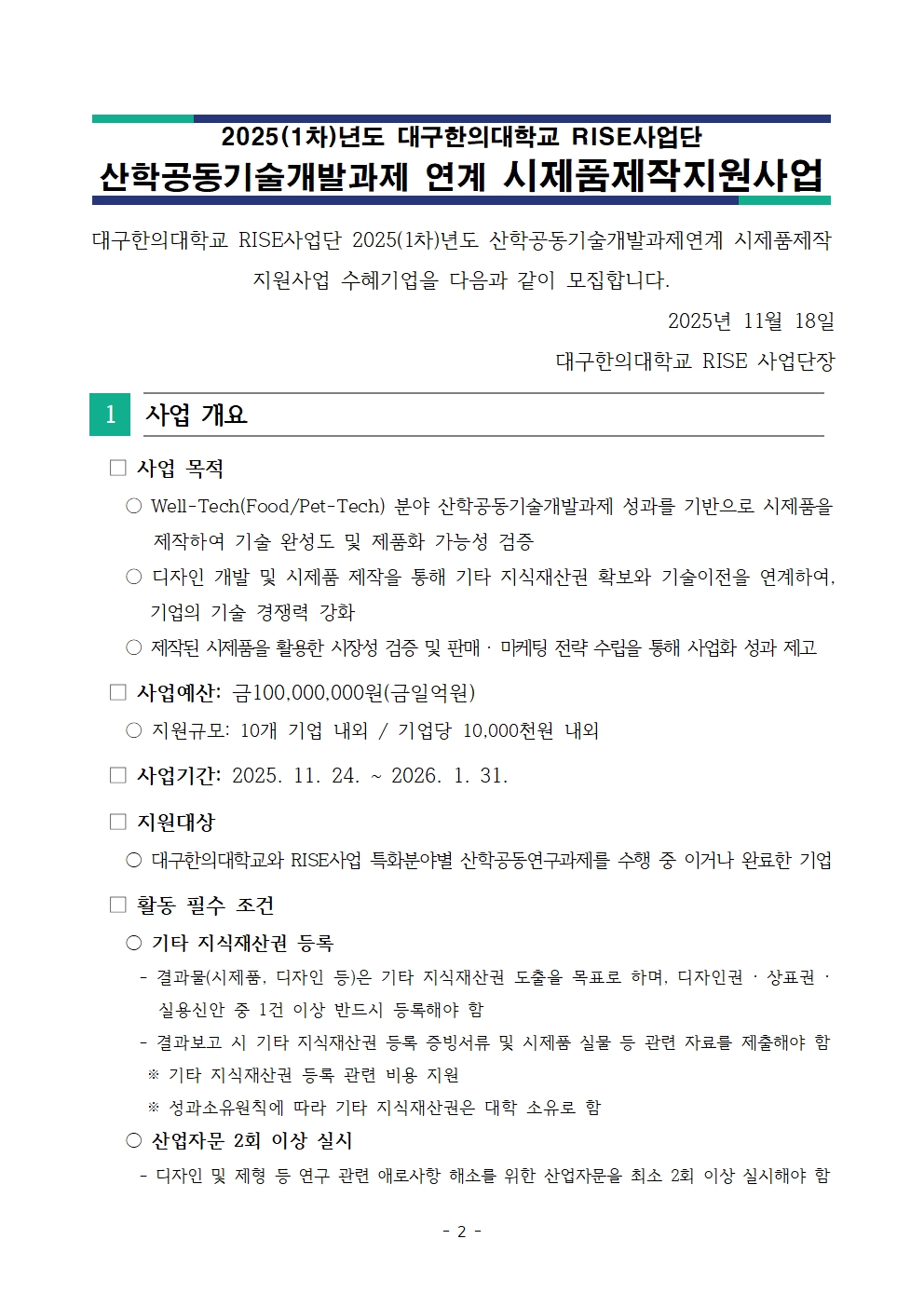 2025(1차)년도 RISE사업단 산학공동기술개발과제연계 시제품제작 지원사업
