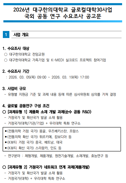 (2026글로컬대학) K-MEDI 글로벌 공동 연구 수요 조사