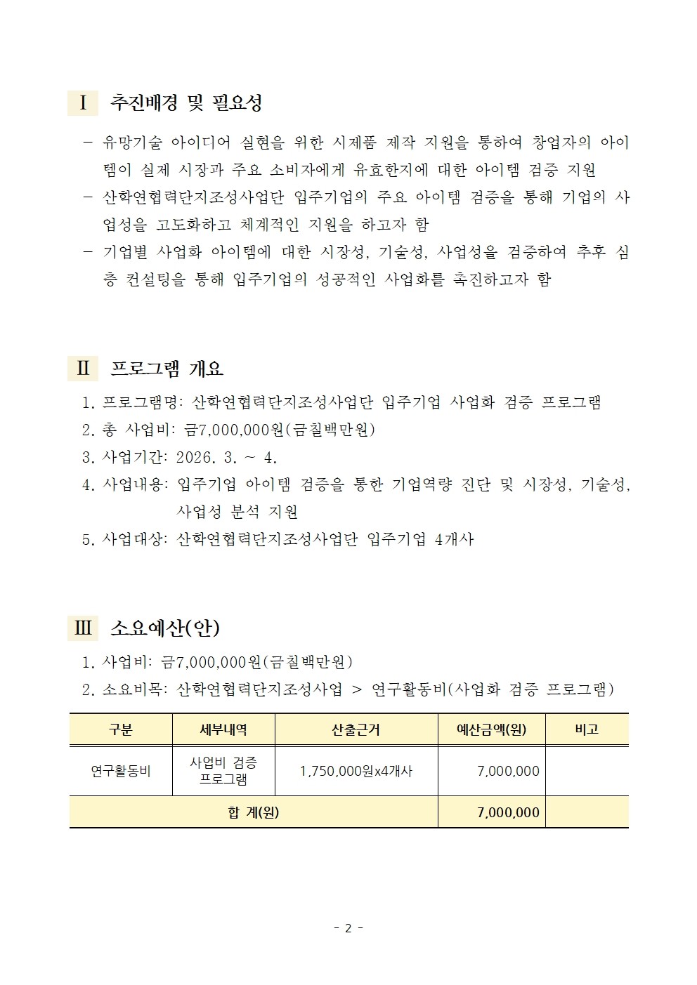 2026(2차)년도 산학연협력단지조성사업단 사업화 검증 프로그램 운영(입주기업 아이템 검증 보고서 지원)