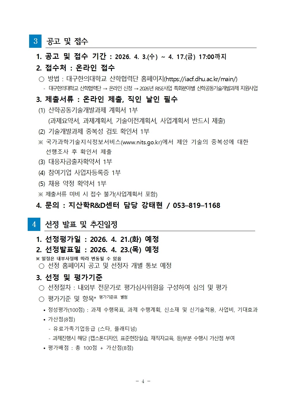 2026(2차)년도 RISE사업단 산학공동기술개발과제 지원사업 공고
