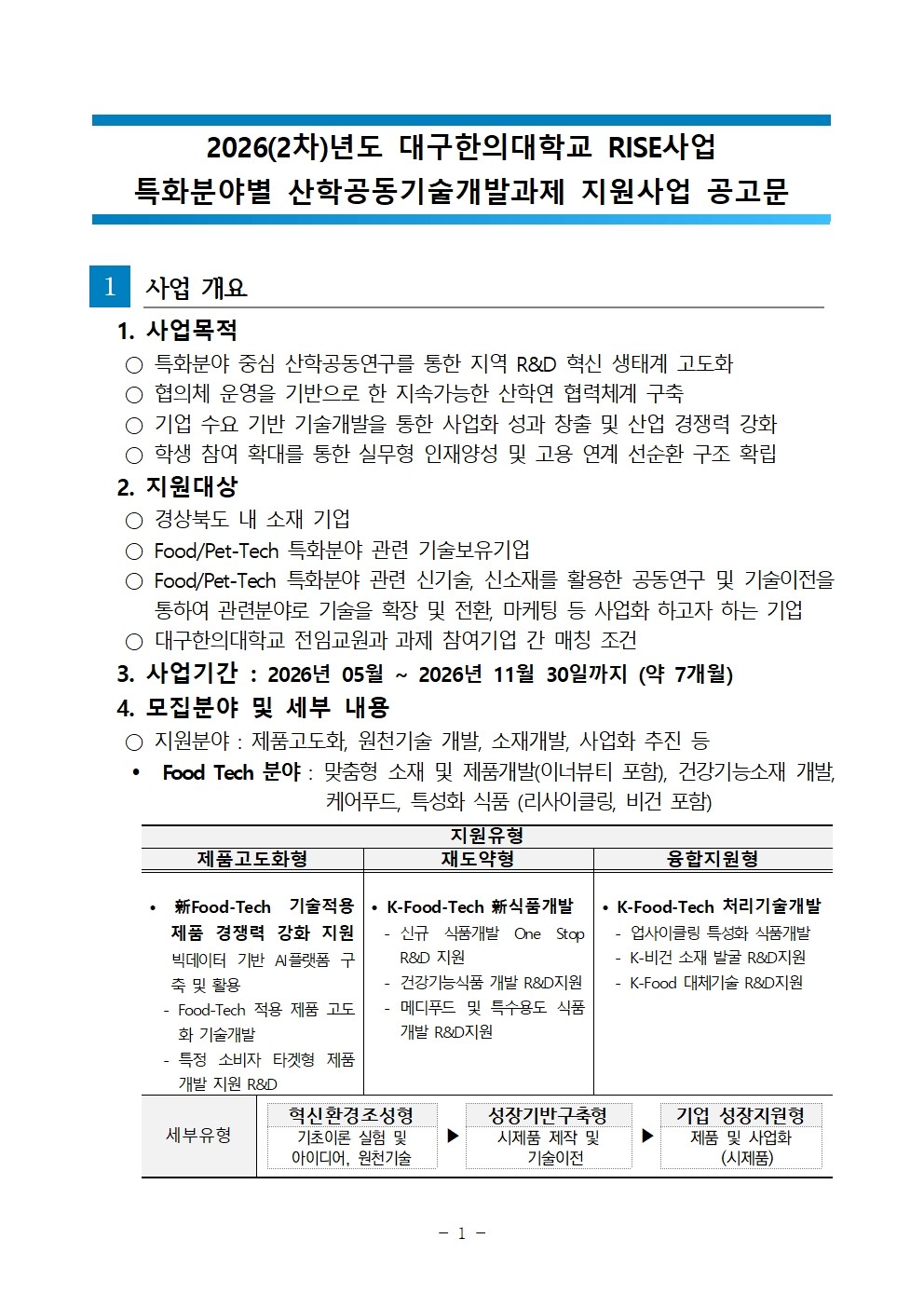 2026(2차)년도 RISE사업 산학공동기술개발과제 모집공고문(배포용).hwp